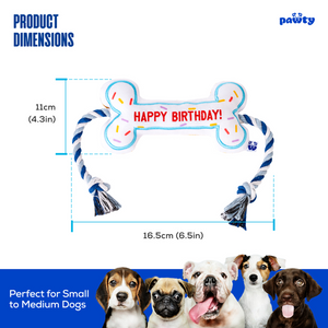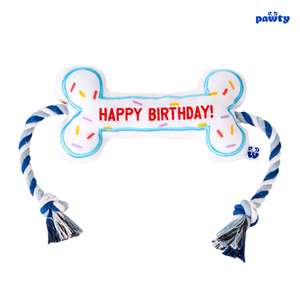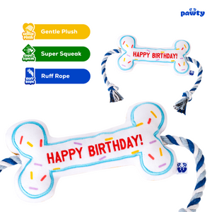 - Birthday Bone ā Squeaky plush bone with crinkle + tug rope. The #1 birthday dog toy on Amazon.