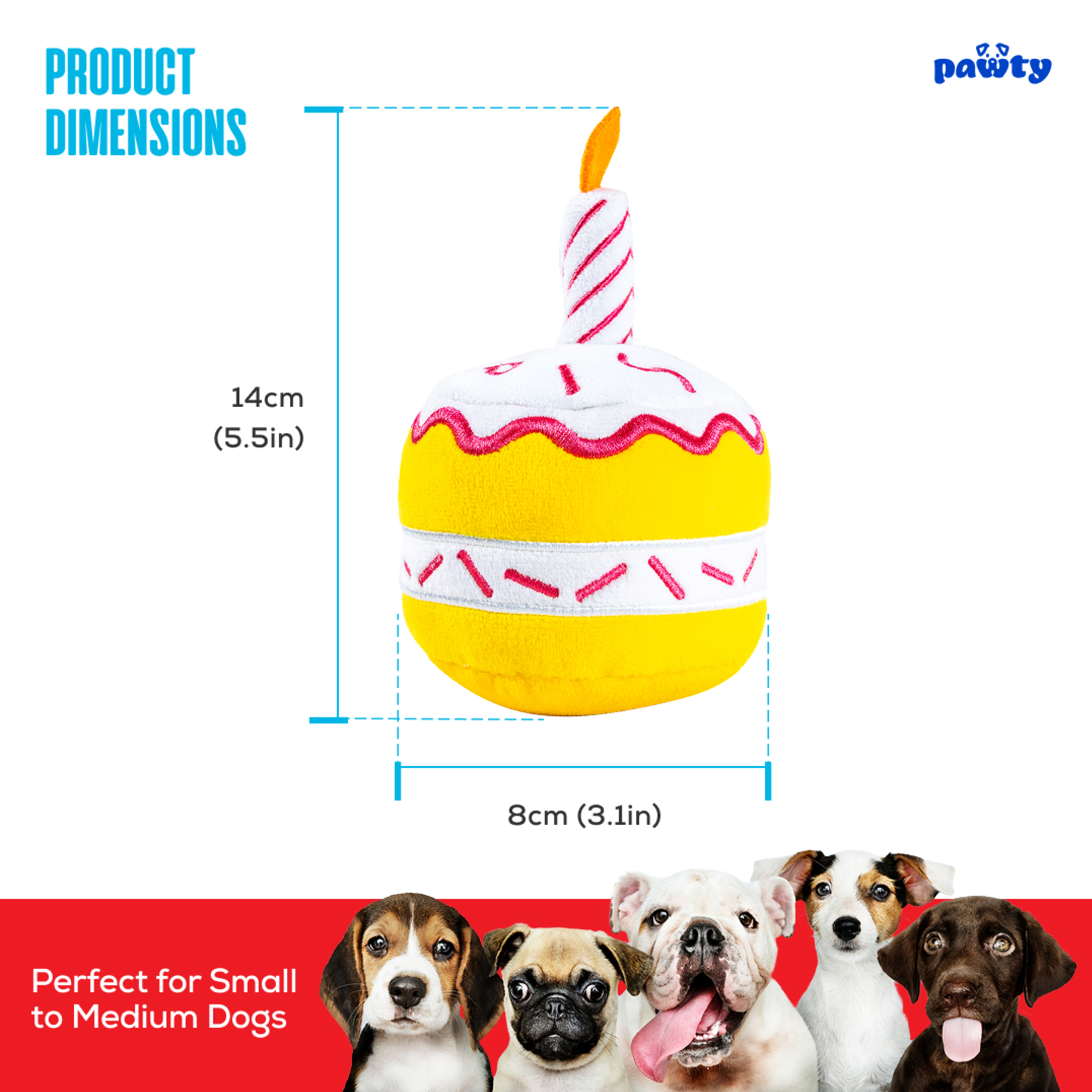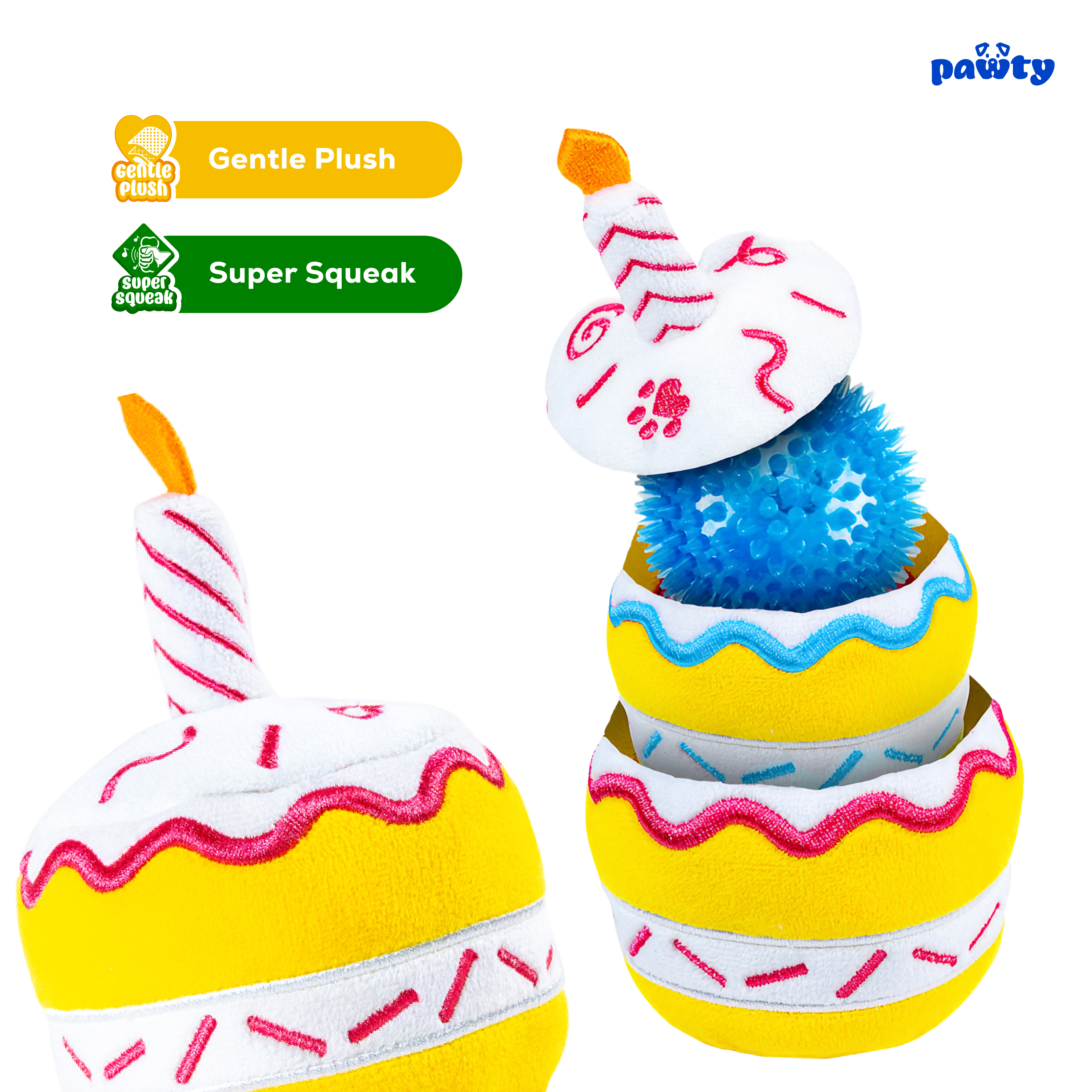 - 3-in-1 Birthday Cupcake ā Three detachable cupcakes, each with a hidden squeaker. Great for fetch, hide & seek, or solo play.